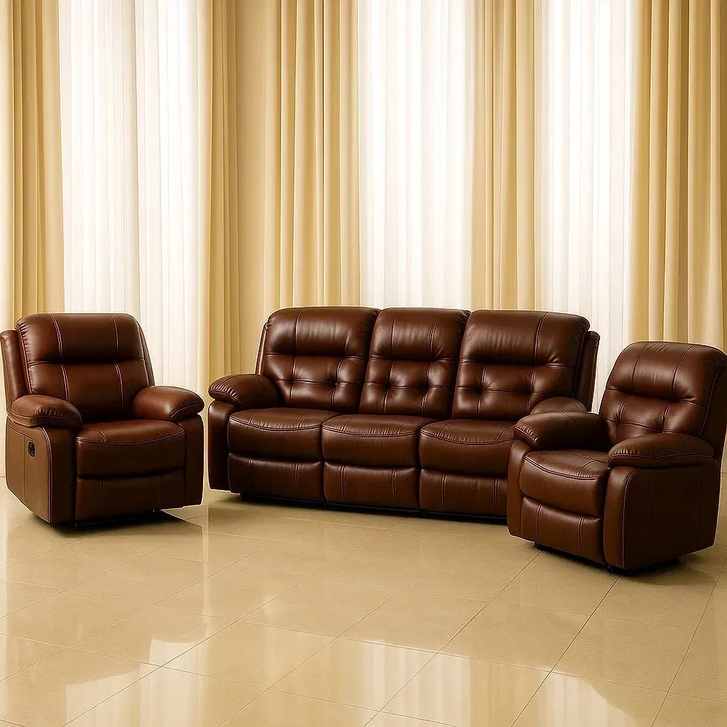 Ensembles de salon ensemble de 3 pièces canapés et fauteuils inclinables cuir marron